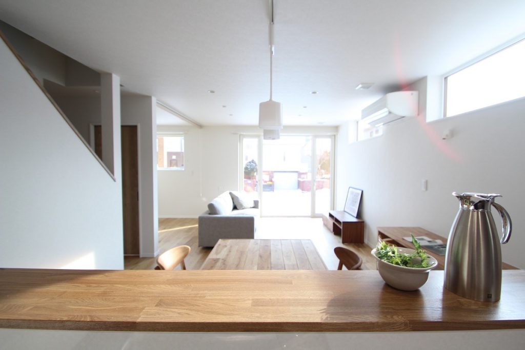 冬は外が寒くても家の中はポカポカ。どの部屋でもあたたかく、夏は涼しい高気密・高断熱住宅はエアコン1台で冷暖房。気密性能(C値)は0.5cm2/m2と高い本物の省エネ住宅です。