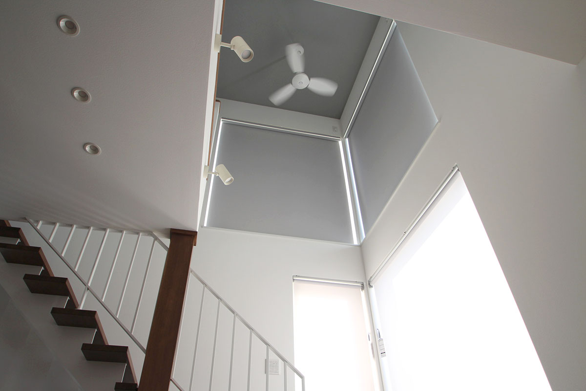 水回りは全て1階に集め2階には広めの納戸を合わせた3部屋と、造作本棚を設置したホームライブラリーをホールに設けました。