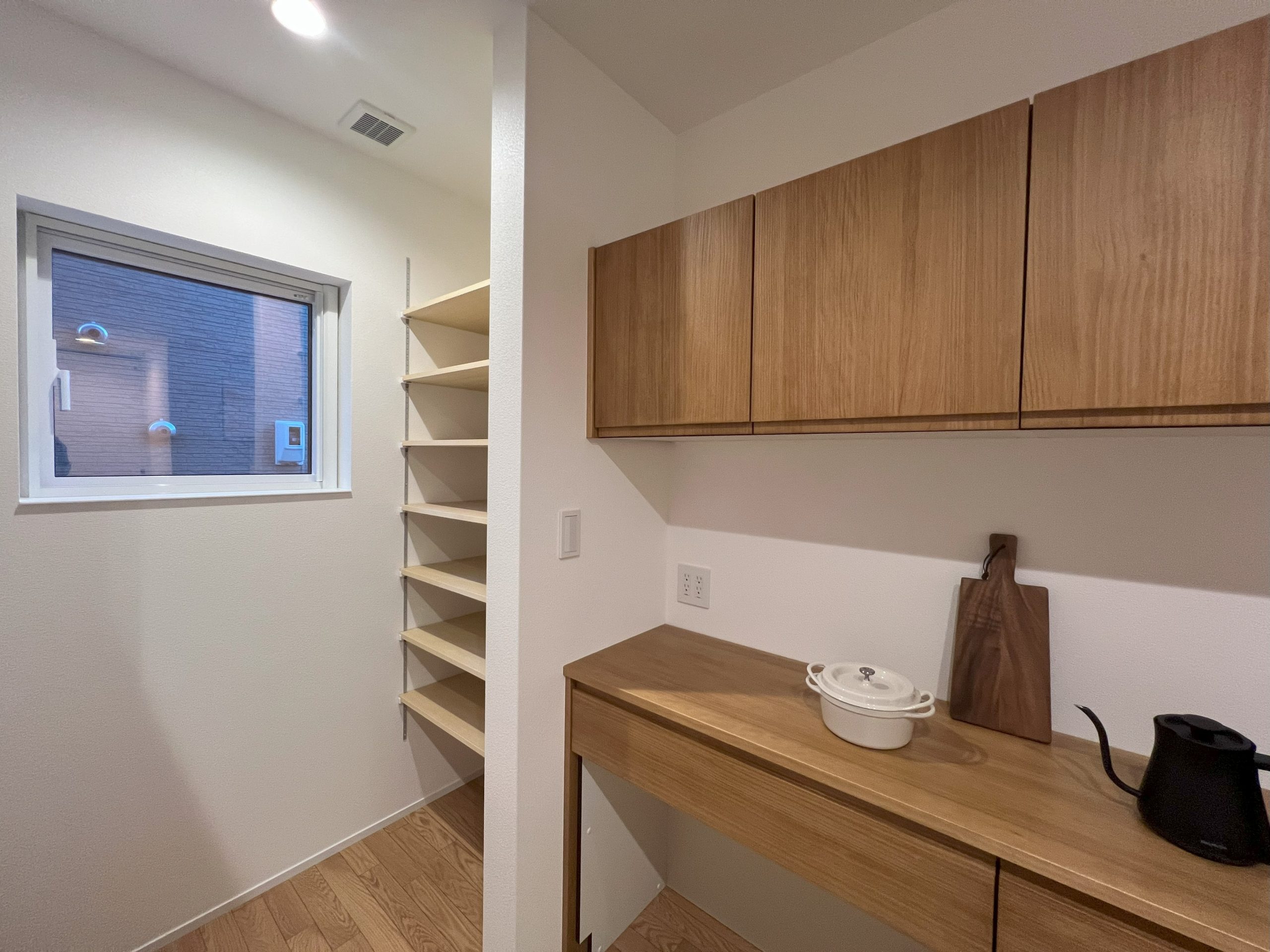 全体の設計では、廊下を最小限に抑え、各部屋へのアクセスをスムーズにしています。この工夫により、忙しい共働き家庭にとっての快適さと便利さが実現されています。1階に配置されたウォークインクローゼットは、寝る準備の動線を効率的にし、無駄な廊下を排除しました。これにより、日々の生活がよりシンプルでストレスフリーに。