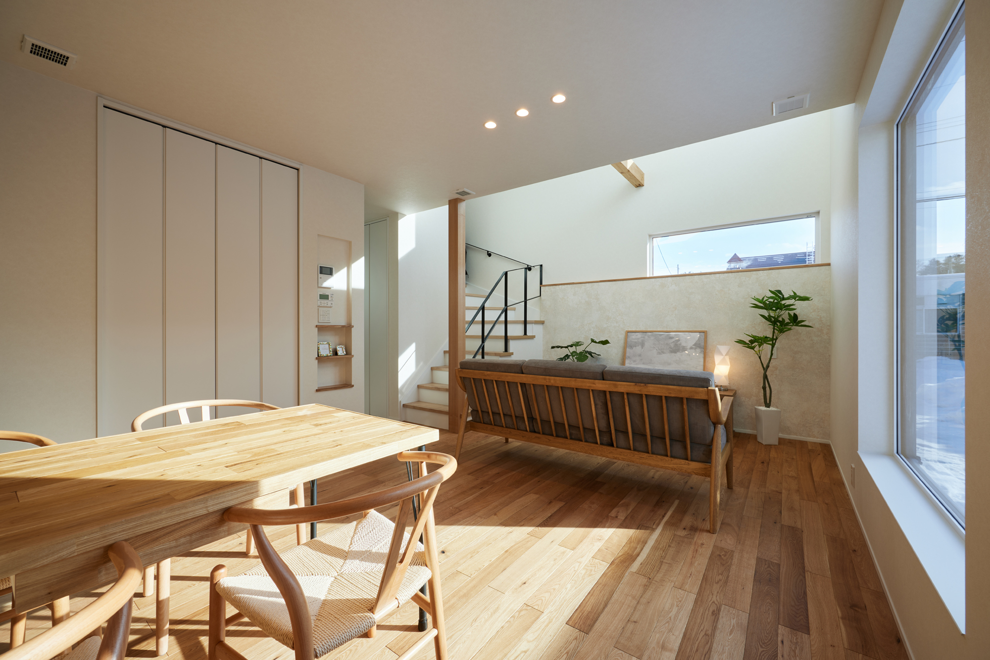 吹き抜けの開放感とナチュラル素材の癒し空間