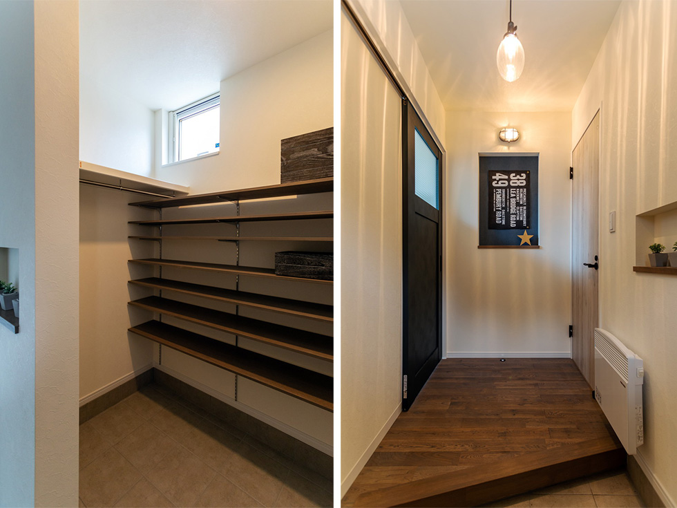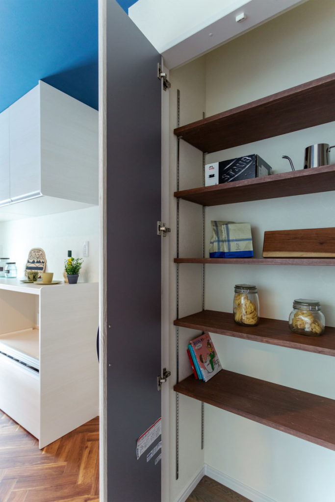 対面キッチンの横には食品を収納できるパントリーもあります。