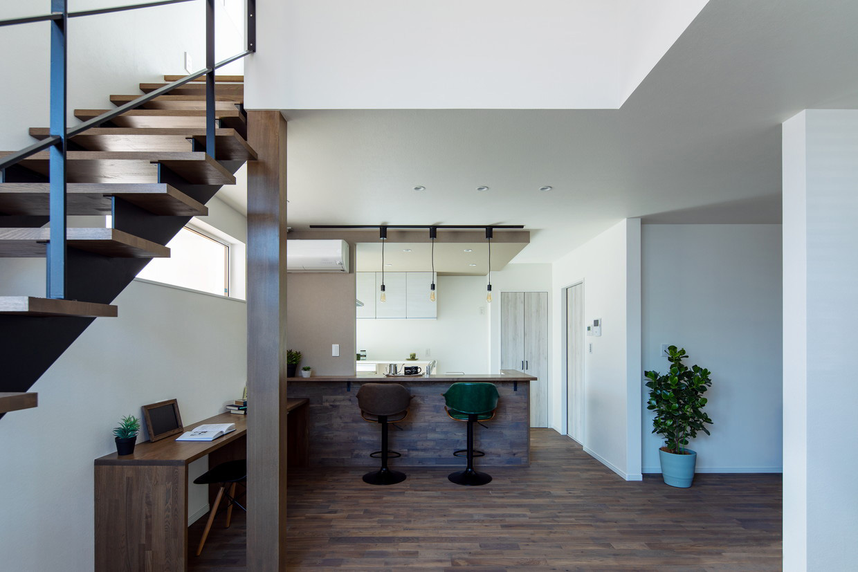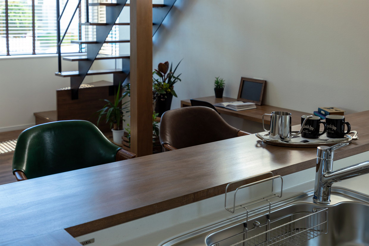 ダイニングテーブルを置かず、対面キッチンにつくったカウンターテーブルで食事ができるスタイルは、空間にゆとりが生まれます。