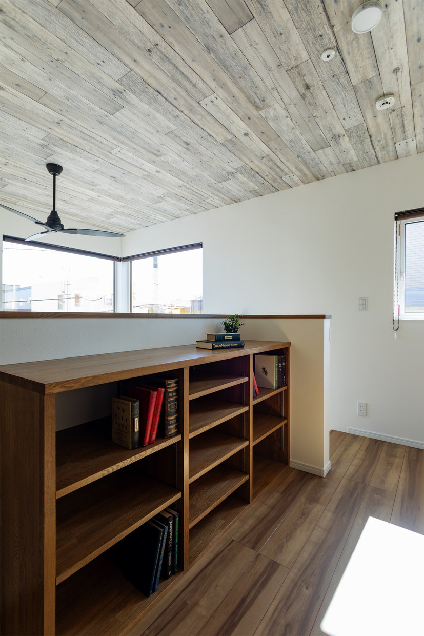 i-fit+では、2階ホールにカウンターテーブルや本棚など、ご家族が共有できるアイテムをご提案しており、Sさまは造作の本棚をご選択されました。