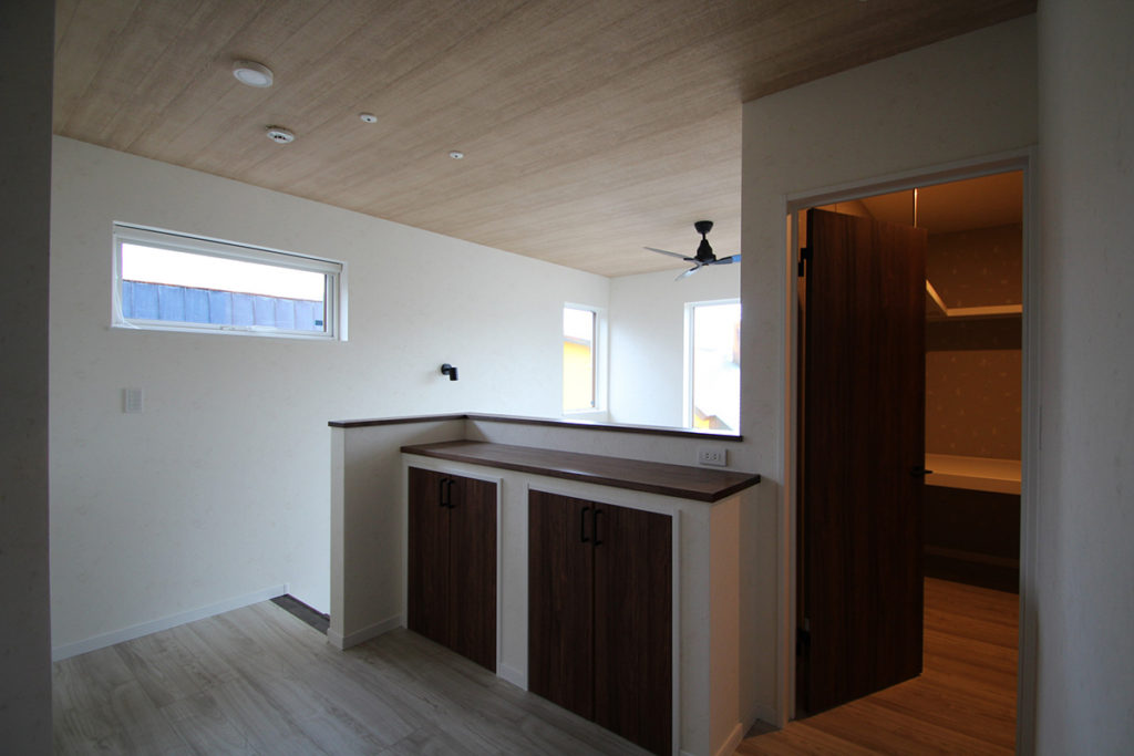 2階ホールには、家族みんなで使えるファミリー本棚とファミリー収納など、お施主様の生活に根差した暮らしやすい間取り。