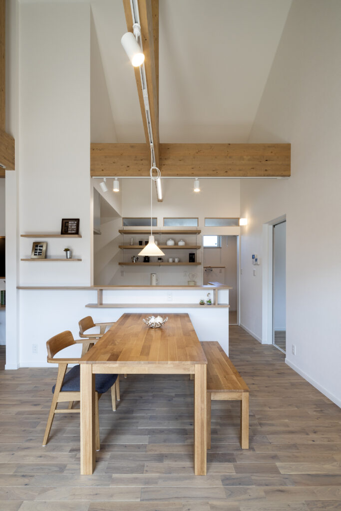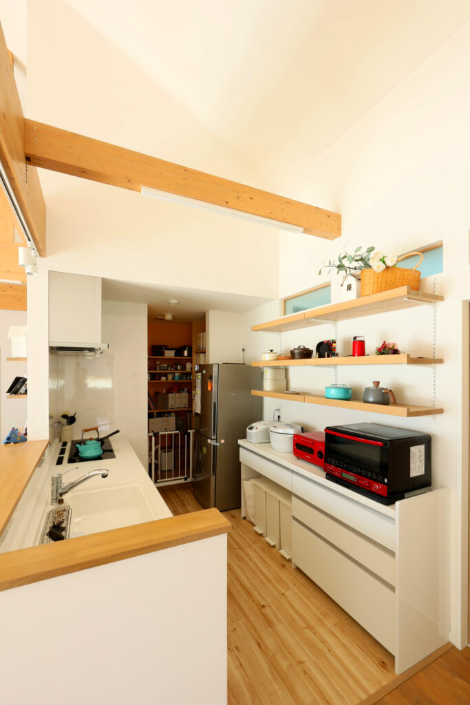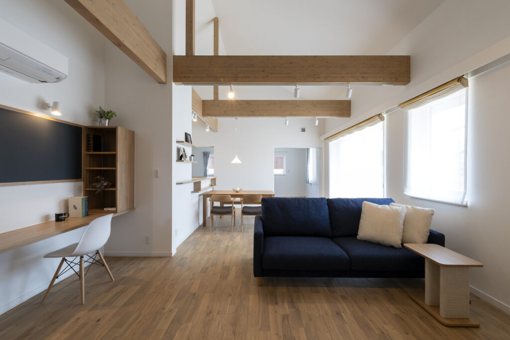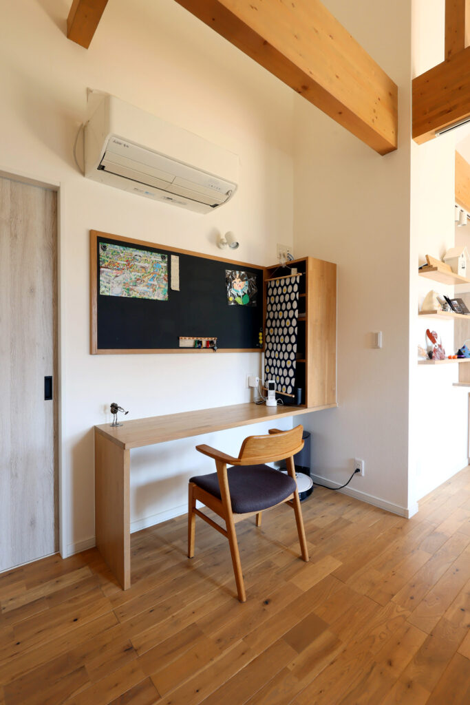見学会を縁に担当者と密にコミュニケーションを取りながら、プランをつくり上げていきました。一緒になって悩んで親身に考えてくれて、可動棚のある収納や、リビングのデスクコーナーなど、使いやすさを考えた提案も多く、助かりました。建築中に現場を見ながら変更した点もありましたが、大工さんもいい方で信頼できました」と奥さま。
