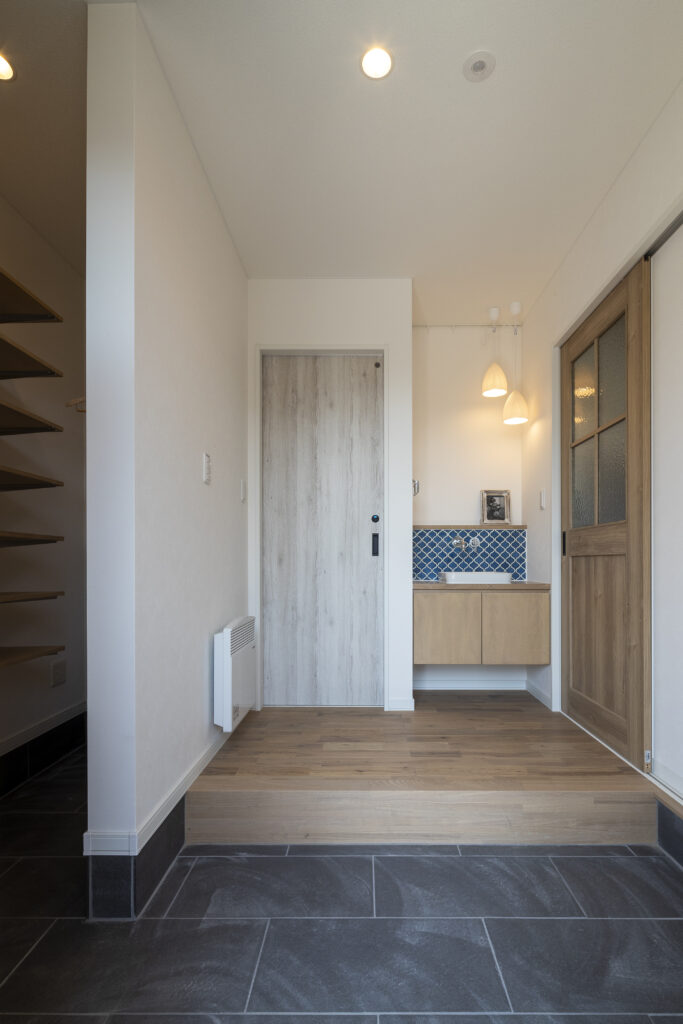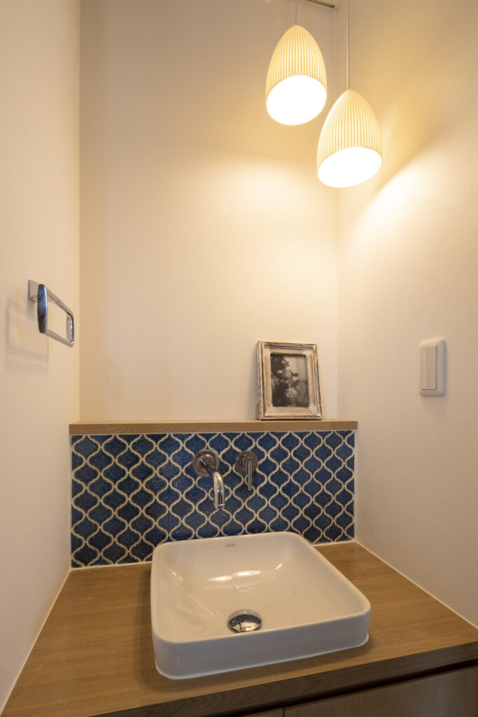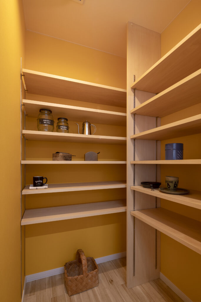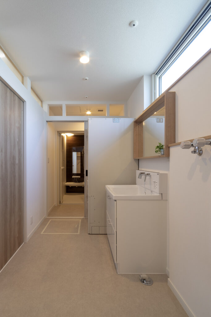 共働きだけに、日々の生活動線は効率的にしたかったというYさまご夫妻。中でもユーティリティの奥に広いウォークインクローゼットを設け、着替えから洗濯、収納までを一括で行えるよう工夫しました。家事効率のアップにより、夫婦でゆっくり過ごす時間も増えたとか。