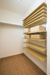 玄関には大容量のシューズクローゼット、リビングにも収納があり、2階にはウォークインクローゼットや納戸など、適材適所にたっぷり収納があります。