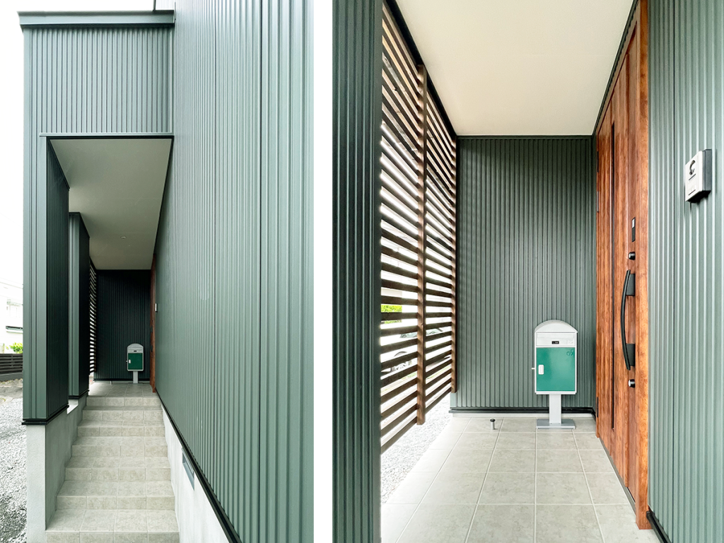 木部分はルーバーになっているので、アプローチをほどよく明るくしてくれます。